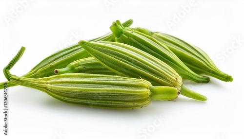 Fresh green vegetable pods on white background.
