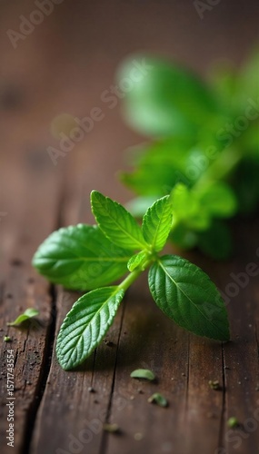 Fresh Herb Sprig on Rustic Wood Vibrant Natural Beauty for Culinary, Wellness, and Spa Themes