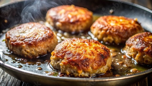 Fresh Homemade Cutlets Cooking in Frying Pan - Close-Up Shot for Culinary Enthusiasts