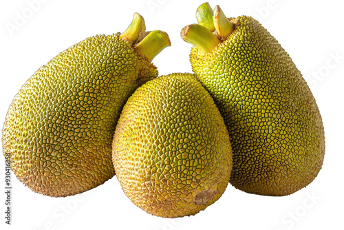 Fresh jackfruits with spiky skin, showcasing their unique texture and vibrant color. Ideal for food and tropical themes.