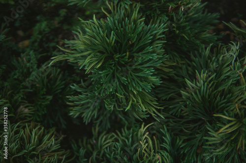 Fresh juicy green shrub. The view from the top. Summer concept. Macro view of abstract nature texture and background organic pattern. Photo shoot in Vietnam