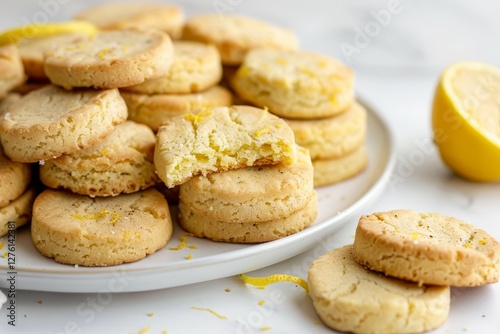lemon, biscuit, flaky, white plate, zest, fresh, cosy, inviting, breakfast, pastry, food, kitchen, delicious, citrous, stack, appetising, texture, garnish, homemade, culinary, dessert, comfort, bright, artisanal, rustic, delightful, arrangement, morning, refreshment, tart, classic, snack, sweet, bakery, taste, gold, fluffy, ai, realism, photorealistic, realistic