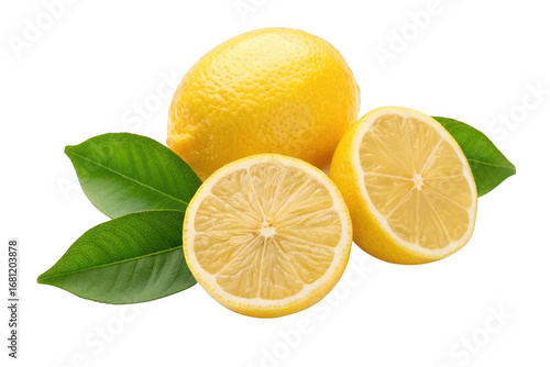 lemon, citrous, fruit, fresh, ripe, yellow, green, leaf, whole, halved, sliced, food, ingredient, healthy, vitamin, sour, tart, refreshing, natural, organic, produce, photo, isolated, transparent, background, cut, juicy, and