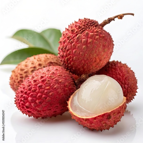 lychee, fresh, fruit, tropical, sweet, juicy, bumpy, seed, healthy, natural, organic, bunch, group, leaf, green leaf, isolated, white background, closeup, still life, studio shot, vibrant, exotic, produce, agriculture, harvest, simple, clean, refreshing, snack, dessert, image, picture, photo, photo, vector, illustration, colourful, slice, single