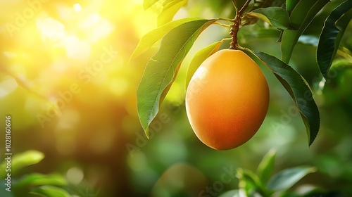 Fresh mango organic product on a tropical outdoor background Copy space : Generative AI