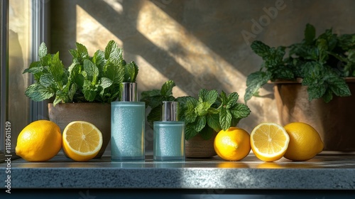 mint, lemon, cosmetic, bottle, marble, fresh, food, ingredient, skincare, natural, aromatherapy, health, wellness, scent, beauty, fragrance, organic, yellow, green, decoration, cleaning, citrous, leaf, slice, minimalist, stylish, nature, home, hygiene, juice, herb, luxury, potpourri, aesthetic, summer, freshness, relaxation, remedy, kitchen