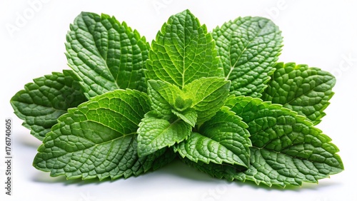 Fresh Mint Leaves Isolated on White Background - Vibrant Green Herbs for Culinary & Herbal Use