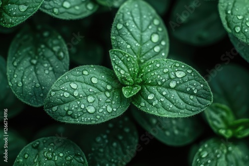 Fresh Mint Leaves with Dew Drops: Nature's Refreshing Aromatic Delight