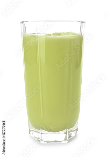 Fresh mung bean juice in glass isolated on white