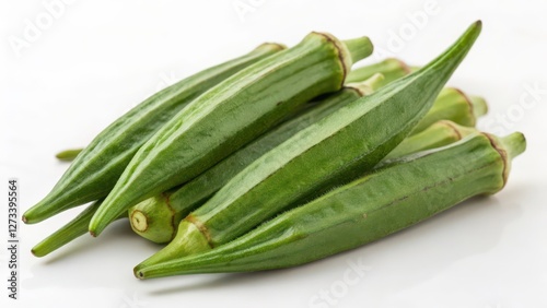 okra, vegetable, green, fresh, food, cooking, ingredient, healthy, diet, nourishment, produce, farm, agriculture, natural, organic, isolated, white, background, studio, photo, closeup, macro, texture, vibrant, colours, plant, epicure, culinary, gastronomy, still life, shot, image, visual, element, object, item, harvest