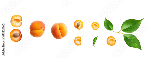 Fresh orange and green beans with peas on white background highlighting vibrant fruits and vegetables with leaves for a healthy diet