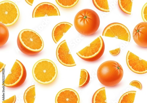 orange, fruit, citrous, slice, whole, pattern, seamless, fresh, juicy, vibrant, food, healthy, vitamin, summer, tropical, sweet, natural, organic, refreshing, texture, bright, isolated, white, top