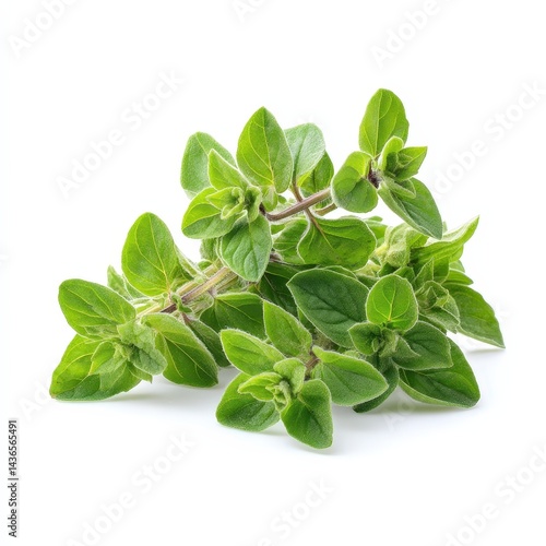 oregano, herb, fresh, green, leaf, plant, culinary, ingredient, seasoning, spice, cooking, fragrant, aromatic, sprig, white background, isolated, studio shot, closeup, food, healthy, organic, natural, kitchen, garnish