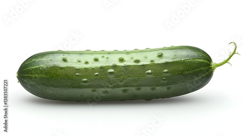 Fresh Organic Cucumber Isolated on a White Background with Water Droplets