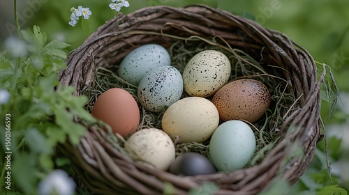 Fresh Organic Eggs in a Rustic Basket - Farm Fresh Produce Concept for Healthy Eating