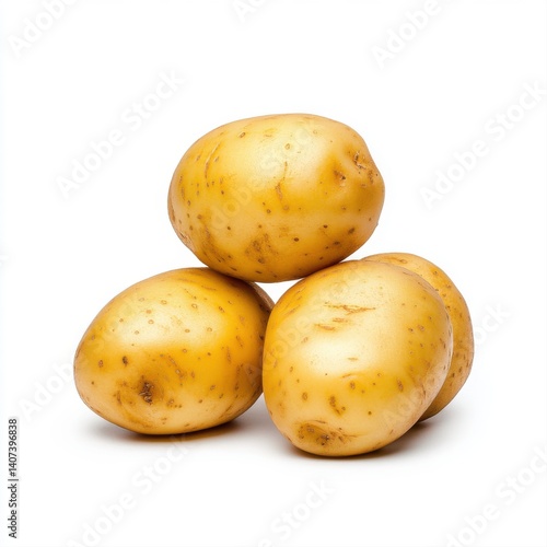 Fresh Organic Potatoes Stacked in a Natural Arrangement on a Clean White Background