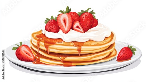 battercake, strawberry, cream, breakfast, dessert, food, sweet, delicious, fresh, isolated, white, background, transparent, vector, illustration, clean, design, minimalist, simple, culinary, epicure, tasty, template, copy, space, wholesome, organic, red, fruit, whipped, presentation, menu, concept, stack, plate, sirup, meal, strawberry, berry, cake, homemade, butter, morning, honey, blueberry, pile, snack