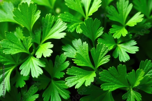 Fresh parsley leaves arranged in a decorative pattern , photography, natural
