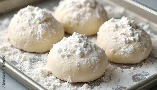 Fresh Pizza Dough Rounds in Metal Pan – Soft Texture and Natural Lighting"