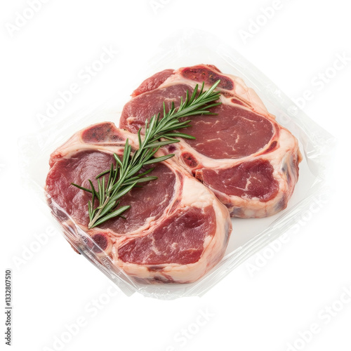 Fresh Pork Chops with Rosemary Packaging on transparent background.