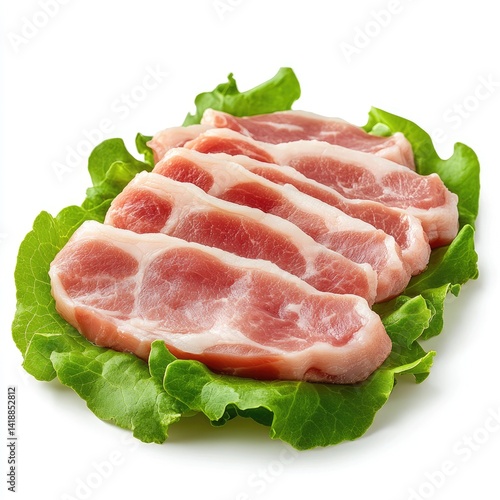 Fresh pork slices on lettuce (2)