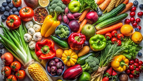 Fresh Produce Night Photography - Vibrant Arrangement on White Background for Culinary Inspiration
