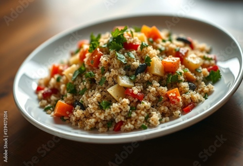 Fresh quinoa salad with colorful vegetables and herbs