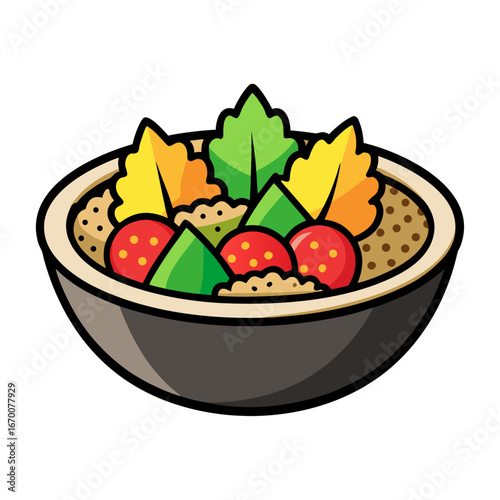 Fresh quinoa salad with colorful vegetables in a bowl, healthy vegetarian lunch, nutritious superfood, vegan meal illustration vector design