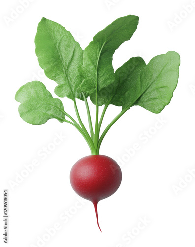 Fresh radish with green leaves isolated on transparent background, healthy eating and organic farming concept