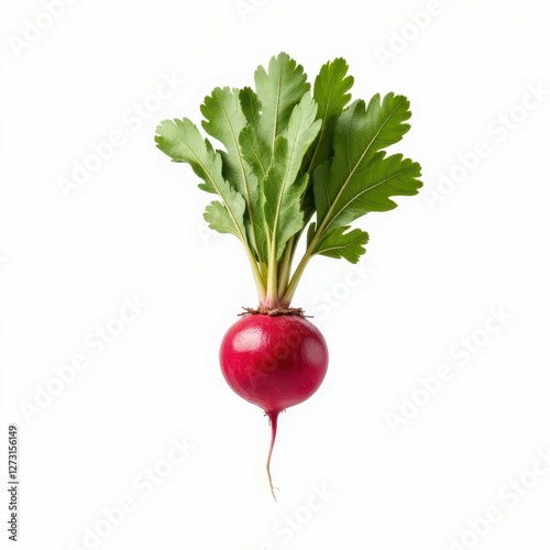 Fresh Radish with Green Leaves Isolated on White Background Nutrient Rich Root Vegetable Produce