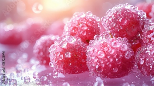 Fresh raspberries covered in droplets, showcasing their vibrant color and texture.