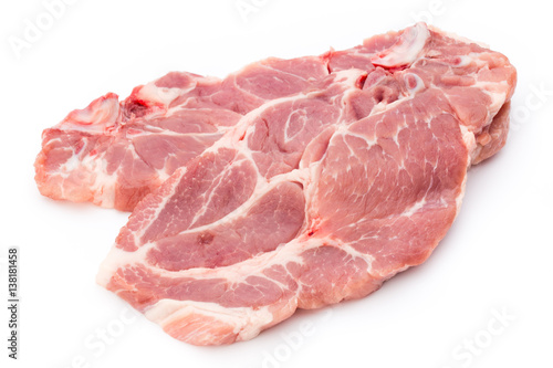 Fresh raw beef steak isolated on white background, top view.