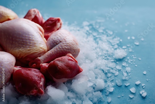 chicken, raw, fresh, ice, blue, meat, poultry, uncooked, leg, thigh, wing, refrigeration, cold, preservation, ingredient, culinary, cooking, kitchen, protein, diet, glacé, freshness, butcher, market, food, breast, preparation, texture, grocery, organic, nourishment, icy, clean, cookery, wholesale, supply, delicious, display, health, chilled, trade