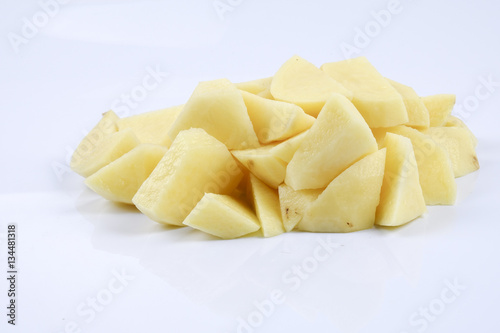 baby, brown, closeup, diet, food, fresh, group, health, healthy, ingredient, isolated, little, new, organic, potato, raw, round, sliced, slice, vegetable, vegetarian, white, yellow