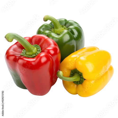 Fresh Red and Green Bell Peppers isolated on transparent background cutout, Png, Cutout