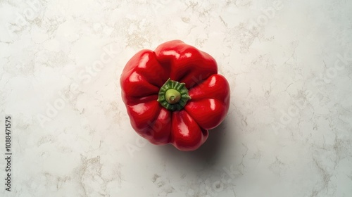 Fresh Red Bell Pepper Isolated on a Light Marble Background Showcasing Its Vibrant Color and Smooth Texture Ideal for Healthy Cooking and Food Photography