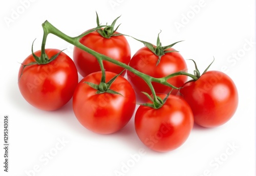 tomatoes, red, vegetable, fresh, glossy, round, fats, stem, green, food, healthy, ripe, organic, juicy, vibrant, white background, group, arrangement, scattered, overlap, texture, shiny, leaf, closeup, natural, farm, harvest, agriculture
