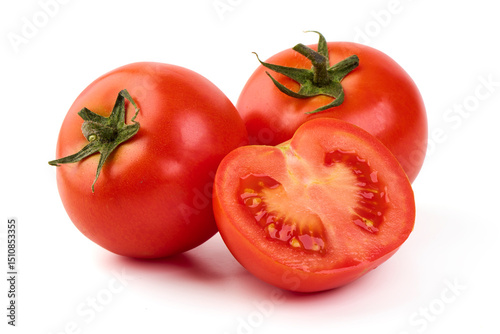 Fresh Red Tomatoes with Sliced Half, Isolated on White Background