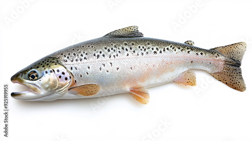 salmon, fish, seafood, fresh, raw, scale, fin, tail, head, white background, aquatic, catch, fishing, protein, healthy, diet, nourishment, food, nature, animal, wildlife