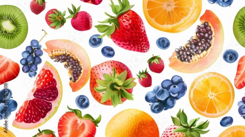 Fresh seamless pattern of summer fruits.