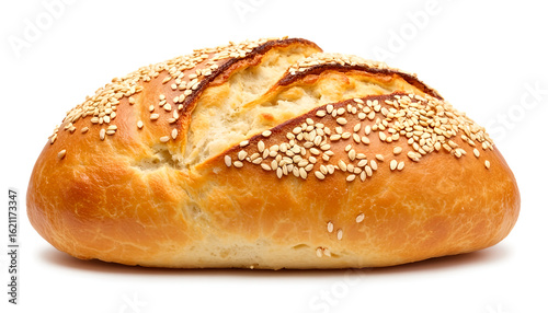 Fresh sesame bread loaf on white background
