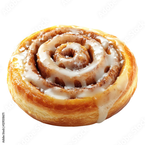 Fresh Soft Cinnamon Roll with Icing Isolated on Transparent Background