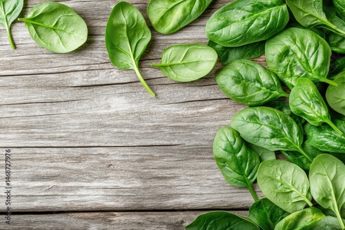 Fresh spinach leaves on a rustic wooden table