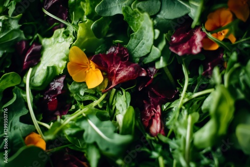 Fresh Spring Salad Close-Up with Greens and Edible Flowers