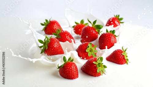 Fresh Strawberries in Milk Splash