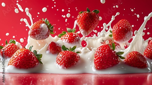 juicy, colourful, ripe, delicious, appetising, fresh, splash, healthy, sweet, strawberry, photo, background, drink, close, dairy, detail, fruit, vibrant, food, white, red, milk, summer, closeup
