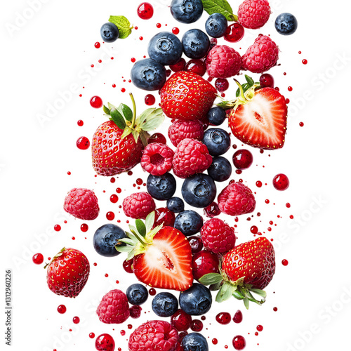 Fresh Strawberries, Raspberries, and Blueberries Bursting Isolated on Transparent Background