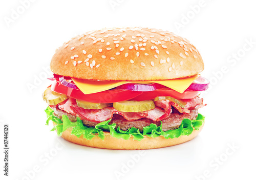 onion, closeup, meal, lettuce, bar-b-q, bun, beef, slice, nobody, delicious, green, red, sesame, junk, thick, macro, vegetable, dinner, tomatoes, tasty, grilled, hamburger, sharpened, lunch, colours, sandwich, selective, cooked, classic, fresh, bread, burger, melted, photograph, bar-b-q, served, food, big, juicy, snack, meat, american, fast