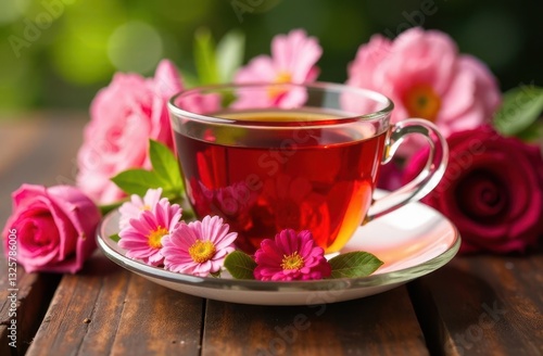 tea, flower, garden, rose, cup, fragrant, clear, serene, drink, nature, freshness, spring, herbal, blooming, calmness, glassware, beverage, colours, plate, flower petals, enjoyment, craftsman, relaxation, aroma, arrangement, presentation, flora, healthy, infusion, warm, elegant, rustic, summer, gathering, social, aesthetic, plant, gardening, colours, beauty, seasonal, lover, cosy, brunch, afternoon, ai