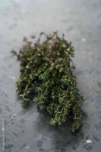 thyme, bunch, spice, seasoning, natural, leaf, ingredient, herb, healthy, garden, favor, closeup, green, food, organic, plant, fresh, rustic, herbal, background, aroma, cooking, nature, aromatic, tasty, crop, condiment, concrete, countertop, kitchen, tree branch, terrazzo, medicine, gardening, vegetarian, cook, bio